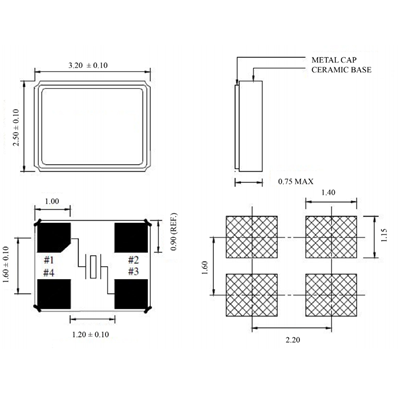 | پکیج | SMD-4 (3.2mm x 2.5mm) |