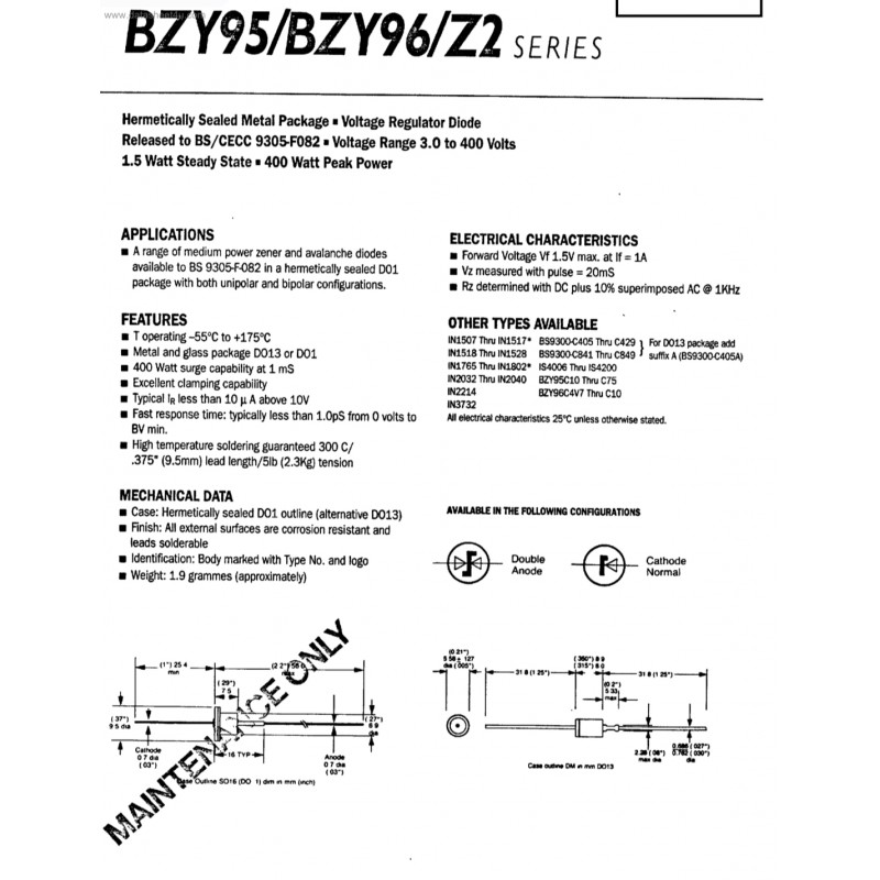 5.6V , 1.5Watt , 3.5Amp maximum Zener current جزییات بیشتر