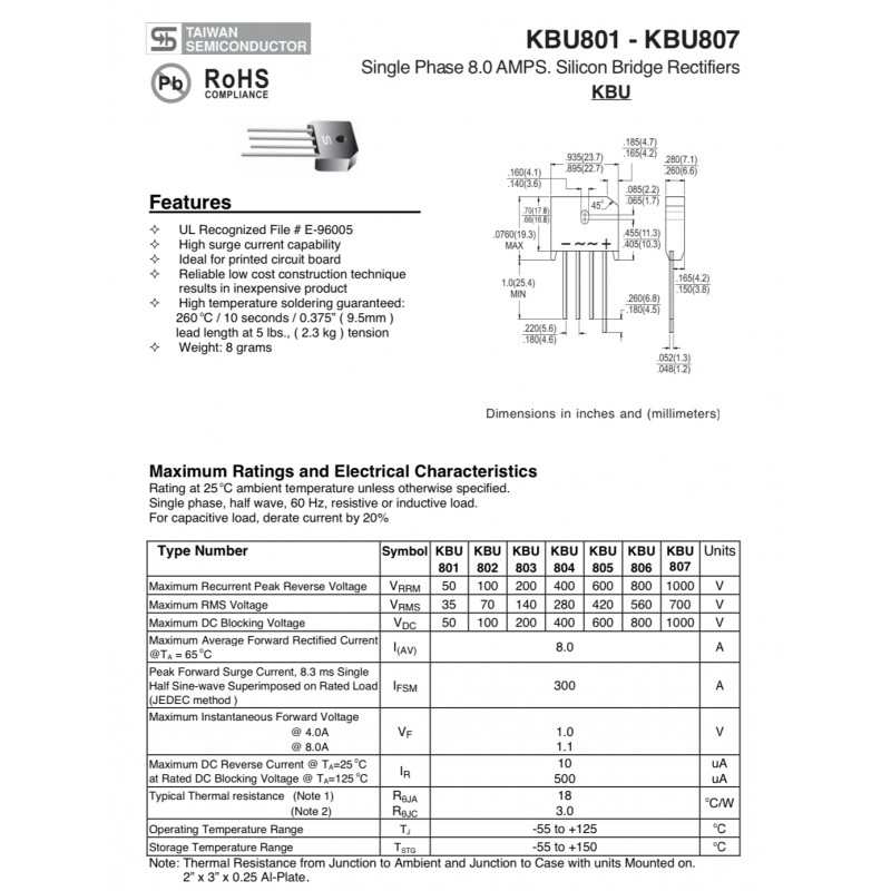 Bridge Rectifiers 8.0 Amp 100 Volt