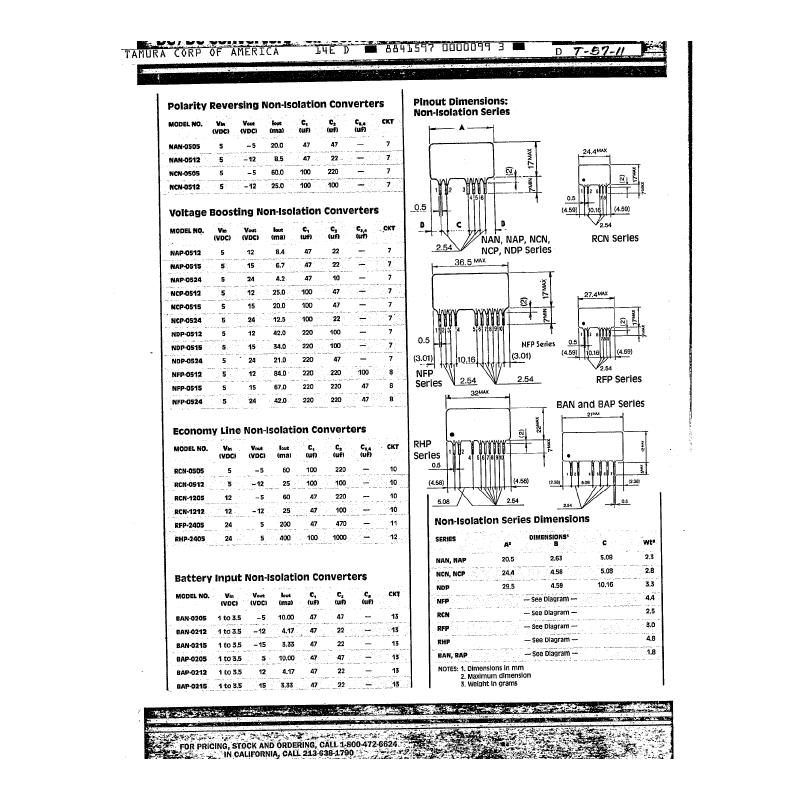 DC To DC Converter INPUT 5V-OUTPUT 15V 67mA NFP-0515 DC/DC TAMURA
