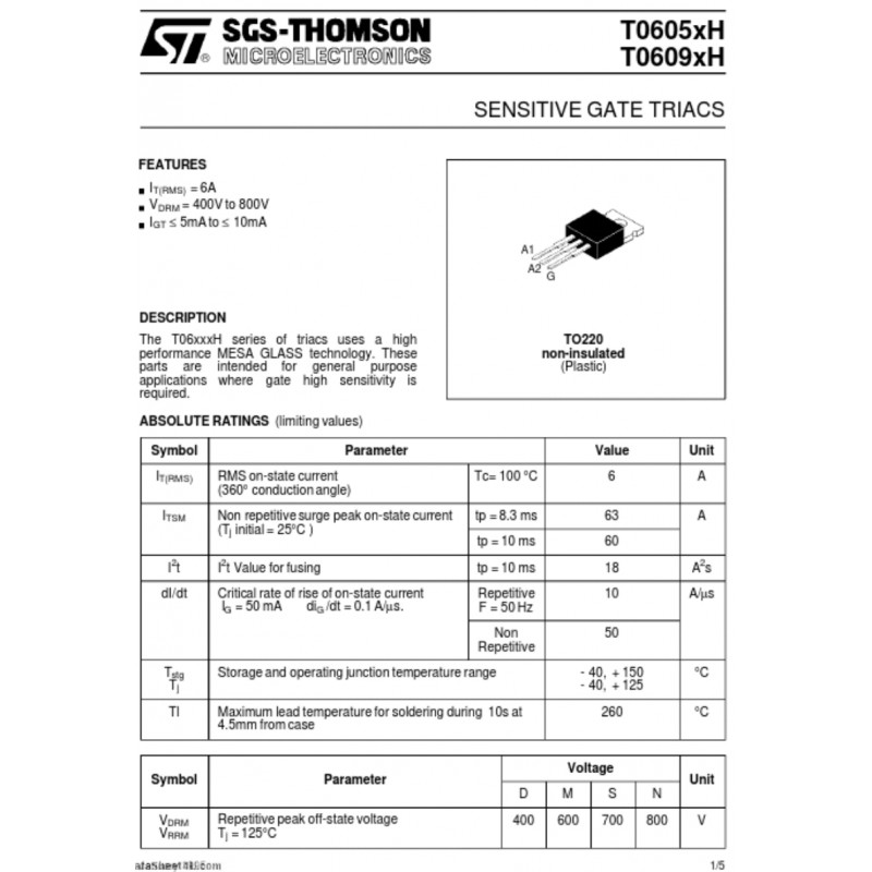 Triac 800V/6A/Gate sensitive